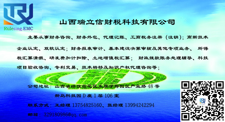 山西瑞立信財(cái)稅科技有限公司是以會(huì)計(jì)師事務(wù)所、稅務(wù)師事務(wù)所及知識(shí)產(chǎn)權(quán)代理公司等專業(yè)服務(wù)機(jī)構(gòu)作為依托背景,擁有多名注冊(cè)會(huì)計(jì)師、注冊(cè)稅務(wù)師、會(huì)計(jì)師、助理會(huì)計(jì)師等專業(yè)的財(cái)稅人員,擁有可靠而廣泛的社會(huì)資源,能保證客戶享受到安全、放心、可靠、完善的財(cái)稅服務(wù)。